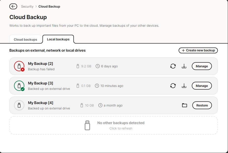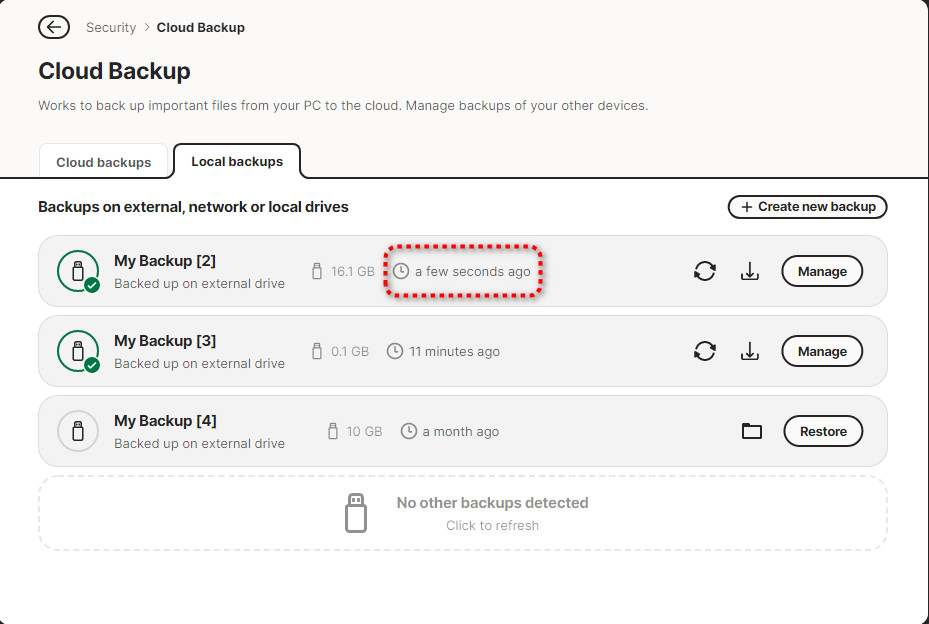 I’m imagining since my ext drive is not always plug’d in. Upon plug in. Norton needs time to call from N360_ BACKUP…folder and time to render/populate Local backups & time to run scheduled task &or user called task…for example: Automatically sync or manual call Synchronize.