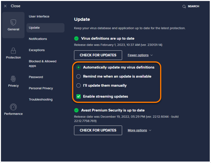 While the publication date on the public support pages may be listed as 2022, the information regarding update settings is still valid and reflects the current options available in Avast Antivirus and Avast One as of late 2024 and 2025 releases. The core functionality for independent updates has not changed.