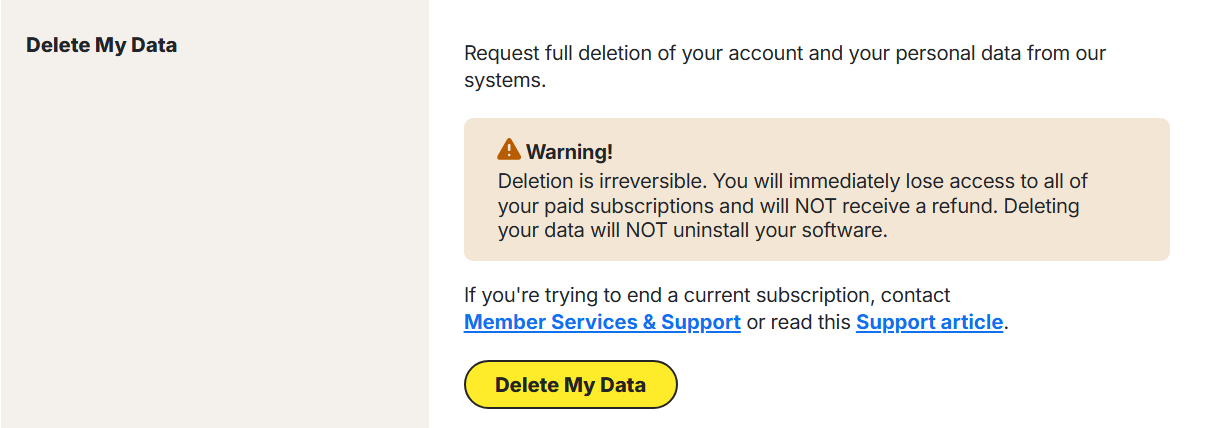 Delete my Norton account here