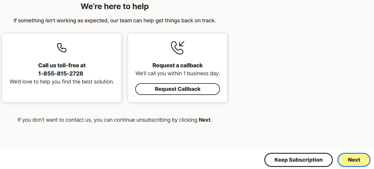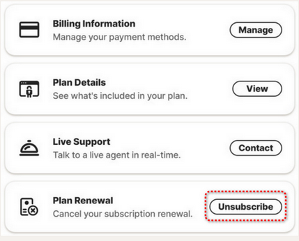 Manage Renewal → Live Support Contact → Call us at | Request callback
