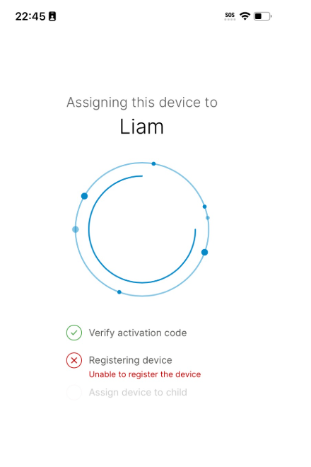 I am trying to register my sons iphone and followed all the steps, however when it is registering it comes up with the following error which I cant fix, ive rebooted both phones and its still comign up in error.