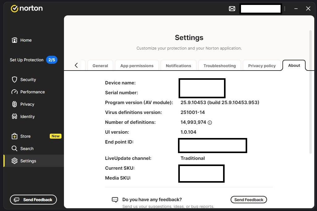 Um, your user interface is entirely different that mine. More than likely you need to do a removal ONLY with the advanced settings in the removal tool. Reboot. Then manually remove all folders/file named Norton, Symantec and Avast, reboot again. Reinstall your product from your Norton account page. Run live updates manually at least once and reboot again.