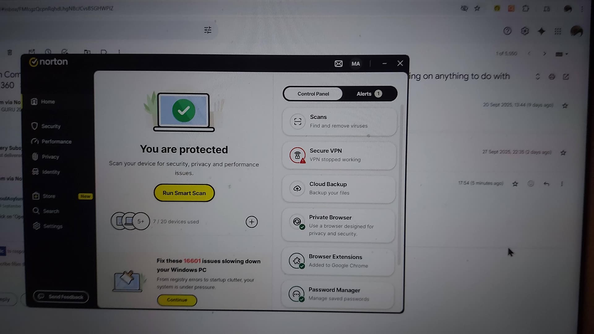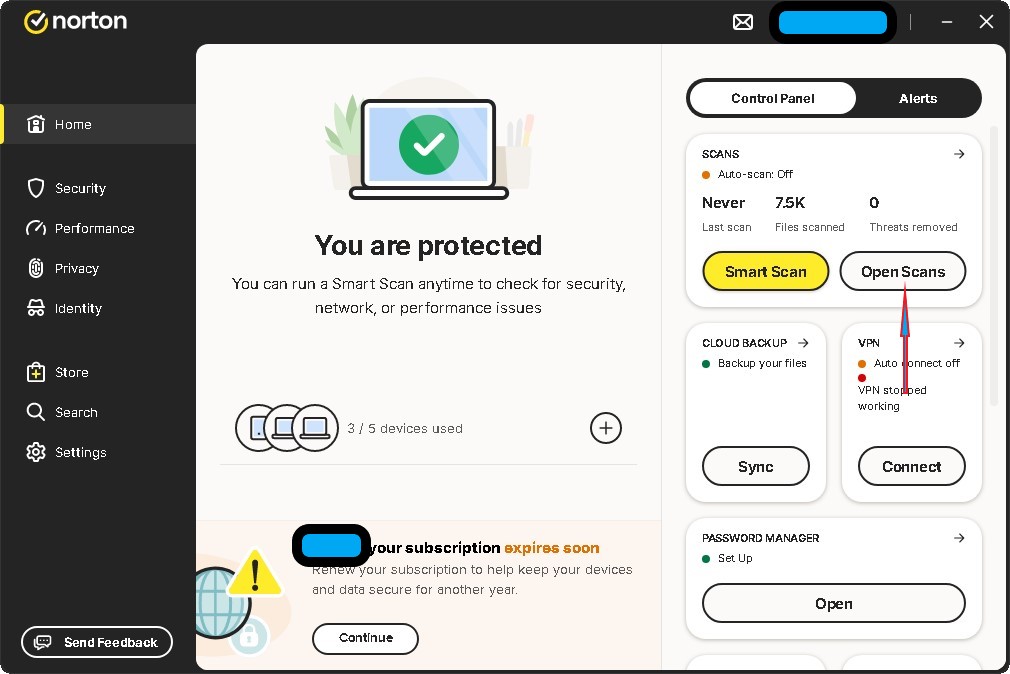 I have a Norton 360 notification showing that there are issues with the Scans. As I am not able t access any Scan data through the control Panel, is there anything I can do to find what these Scan issues are ?