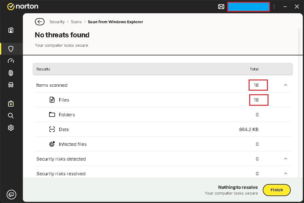 Well, I am baffled. What you are getting is exactly what I used to get and nothing about my Windows version or my Norton 360 has changed, but I don’t get the scan anymore. There have been Windows updates since this problem first came up. Wonder if something has changed there. Anyway, thanks for your help. I guess I’ll just keep doing it the hard way.