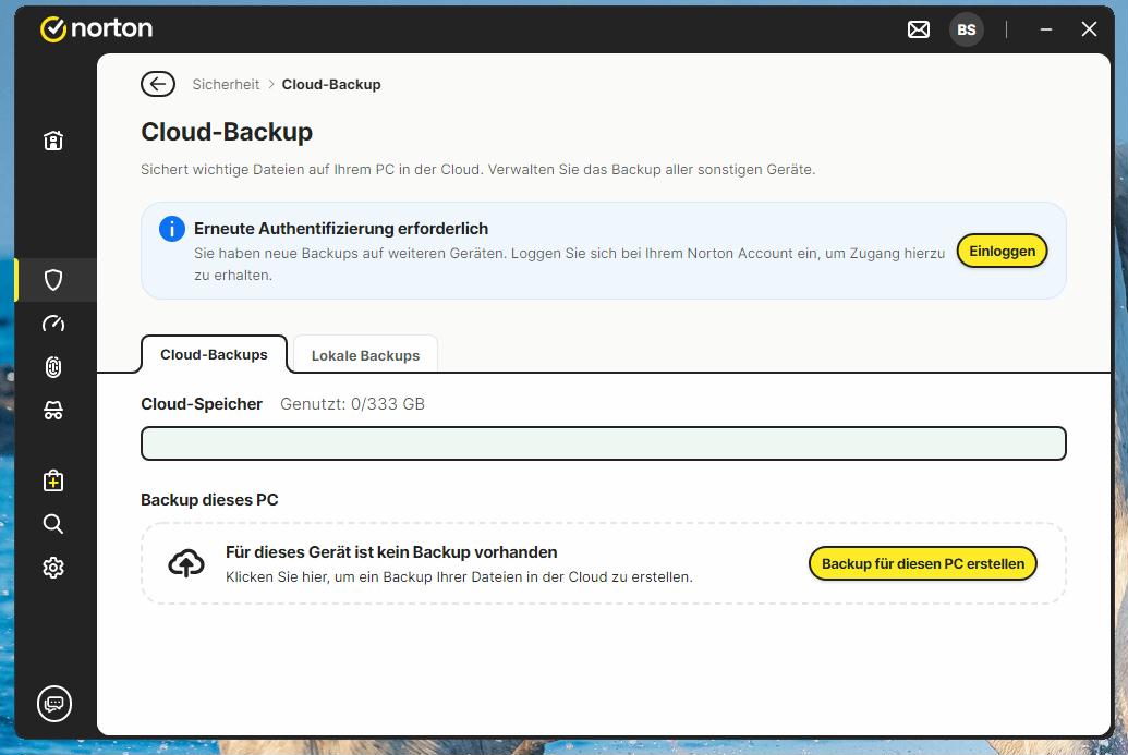 Norton Backup will, dass ich mich ständig dort neu anmelde, weil ich neue Backups auf weiteren Geräten hätte.