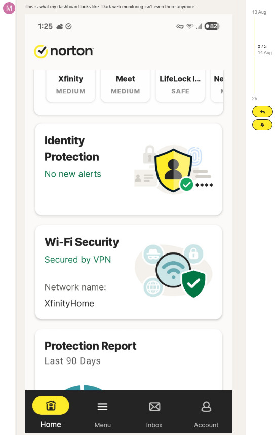 Norton 360 monitors the dark web for your personal information (like your Social Security number, name, address, etc.) and alerts you if it’s found.