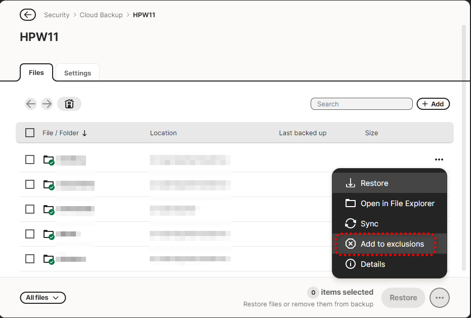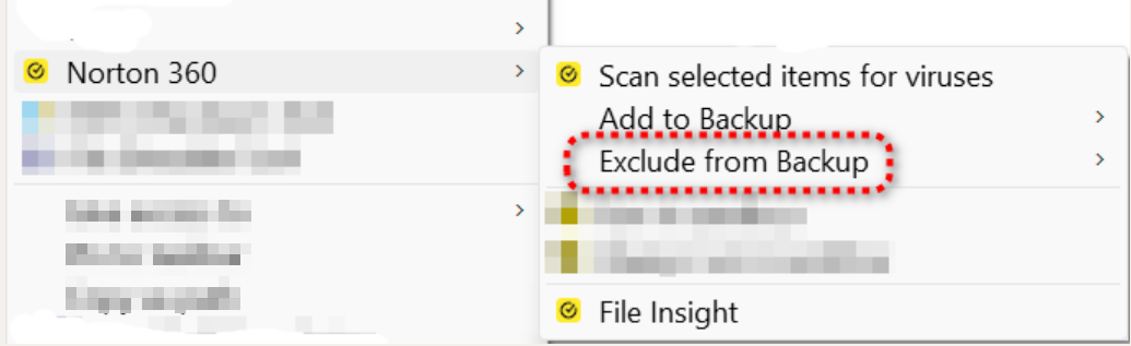 did you try context menu File/Folder → Exclude from Backup