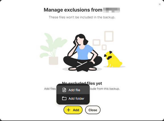 I want to back up my documents folder, but within it there is a large folder which I do not want backed up. How do I exclude this lower level folder. Also, how can I exclude a single file from backup in a folder which is backed up