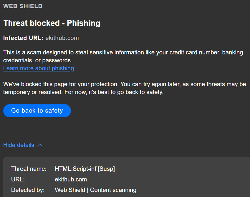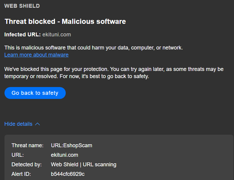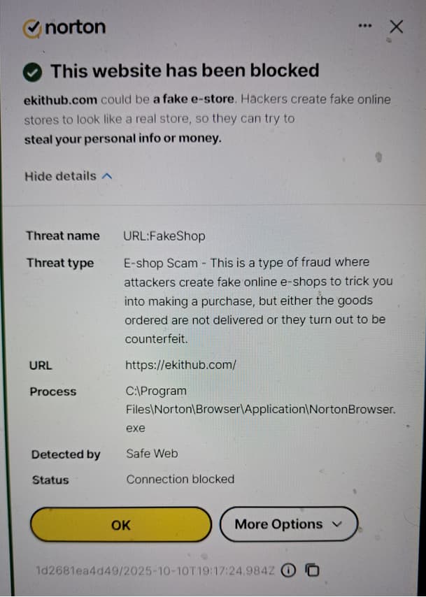 So, then we moved the sales pages to a different website using the same builder software and it too was blocked. Thinking maybe it had something to do with the builder software, we once again moved the sales pages to a 3rd website using html rather than a page builder. This 3rd site has been online for many years and has never had issues, but it was immediately flagged as a fake e-store.