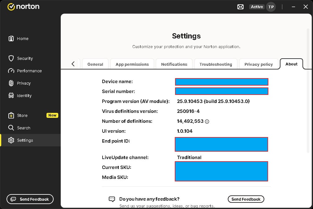 @Maryann_Hogan Is your Norton install version 25.9.10453? This is where to look. Also your permissions level is still at new user vice basic. Basic is required to be able to post screenshots unfortunately.