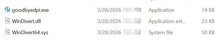 Hello, after experiencing some virus issues, I reset my computer and installed Norton. However, since installing Norton, I have been unable to use Goodbye DPI. I generally used it while accessing platforms such as Discord, Roblox, and other games, but it is not working at the moment. Please assist me. If I cannot find a solution, I will have to uninstall it