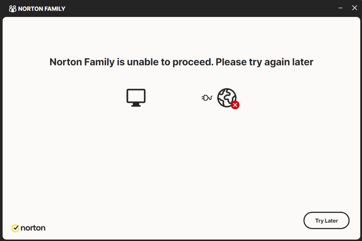 The “Norton Family is unable to proceed. Please try again later” error message typically indicates a temporary issue with Norton Family’s servers or a problem with your internet connection or Norton Family installation. To resolve this, you can try waiting a few minutes and trying again, checking your internet connection, or reinstalling Norton Family.