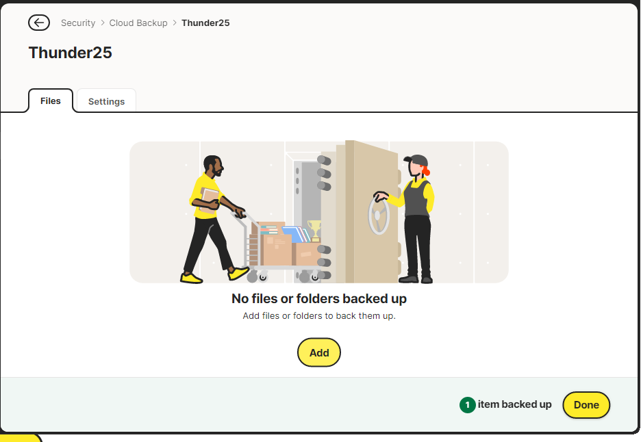 Somehow the cloud backup is willing to back up folders and files that are created by programs, for instance those in the Documents folder. But if I manually create a folder and place files in that folder, Norton refuses to add it to the backup. It says that it has added an item, but it doesn’t show up anywhere. It doesn’t matter where I place that folder, it just doesn’t work.