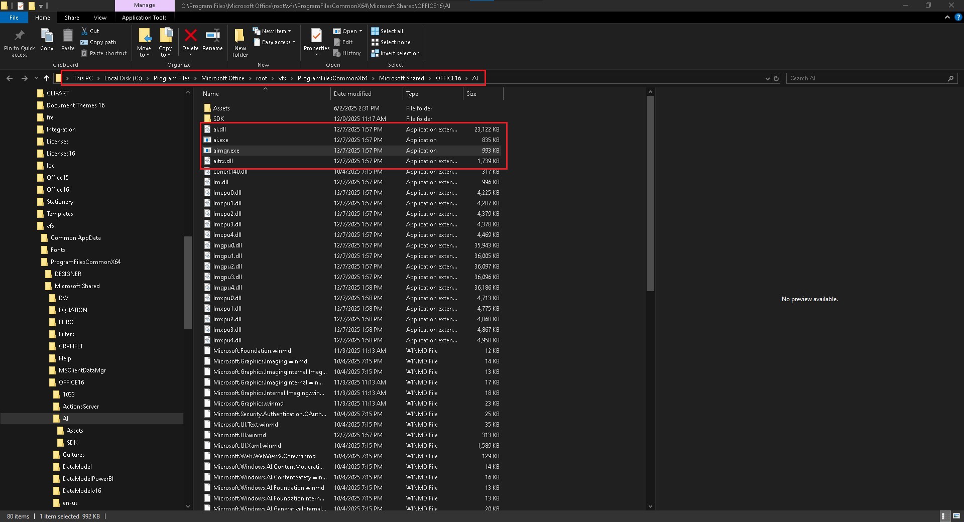 Edited: Wanted to make clear that “Connected Experiences” are NOT ENABLED on any of my machines, yet the ai.exe loads when any Outlook and Word titles are opened. I can stop the local ai process under the Word entry for example and the document reloads and in “compatibility mode” which is odd. And the AI process under Windows will automatically unload and restart no matter what actions are taken. Access, Excel, PowerPoint, and Publisher do NOT trigger the AI process.
