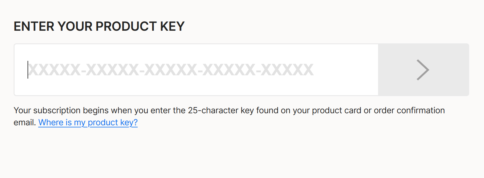 - On the setup page, click on the option to Enter a Product Key.