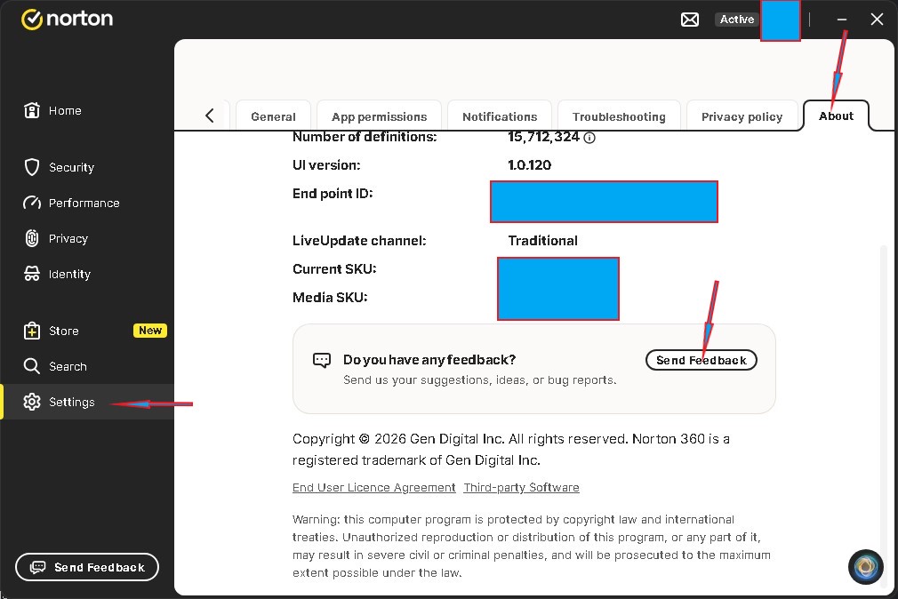 You can send product feedback within the Norton UI as shown in the screenshot below: