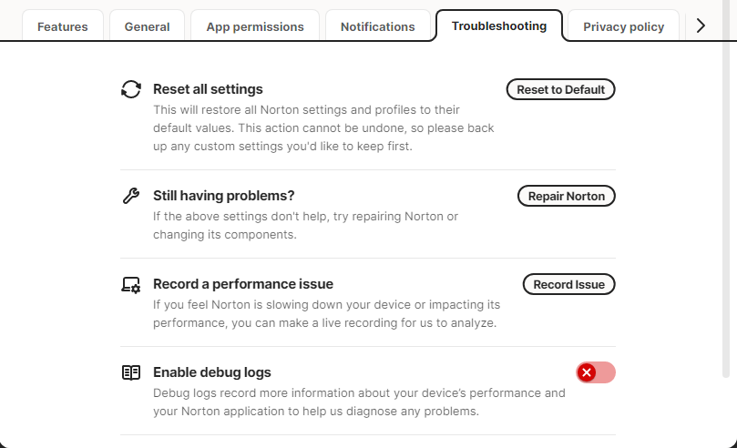 If your Norton is not working as expected and you’ve tried Troubleshooting → Reset to Default &or Repair Norton & clean re-install Norton 360…then…reach out to Norton support.