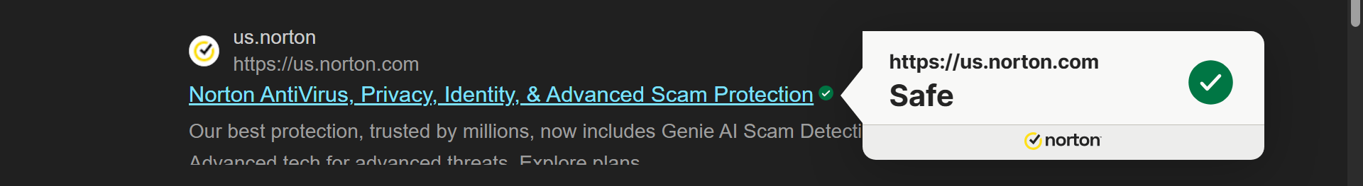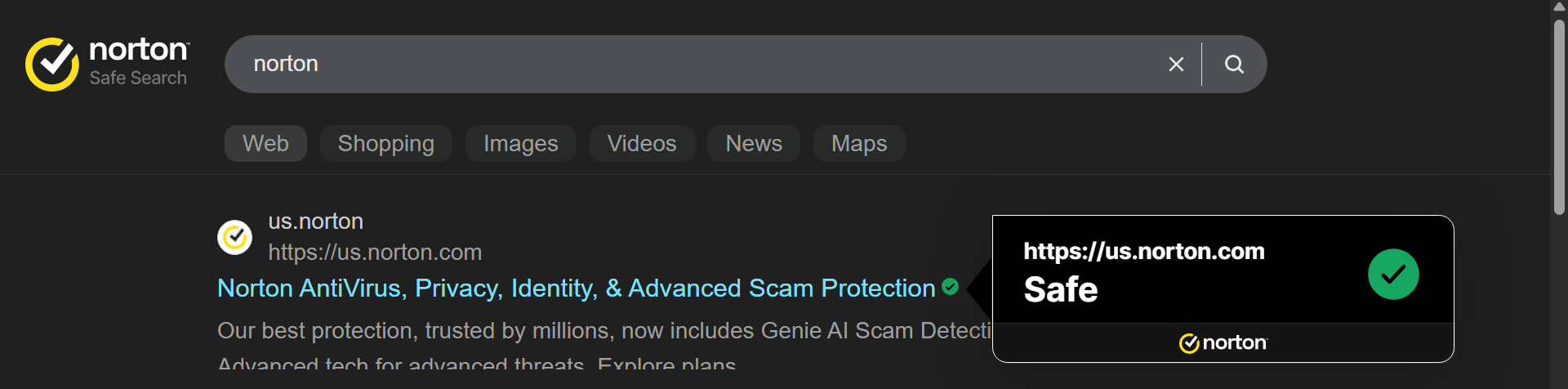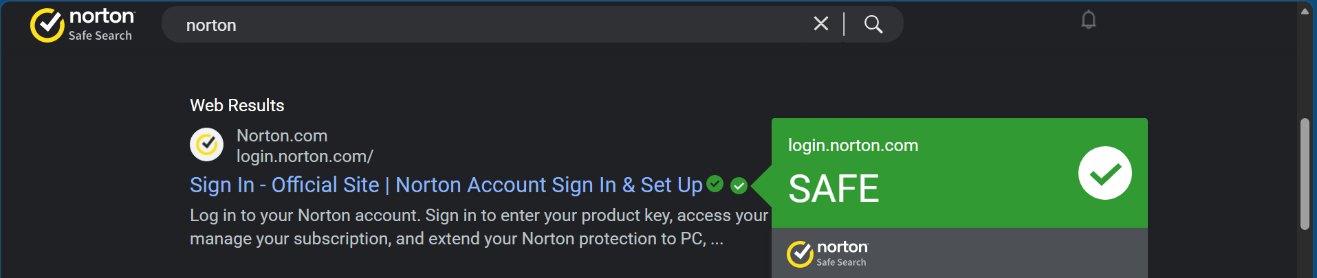 To see the green and red safety icons in your search results, you must now use the Norton Safe Search extension or search via search.norton.com. Norton has updated its policy, and the standalone Norton Safe Web extension no longer displays safety ratings directly on third-party search engines like Google, Yahoo, or Bing.