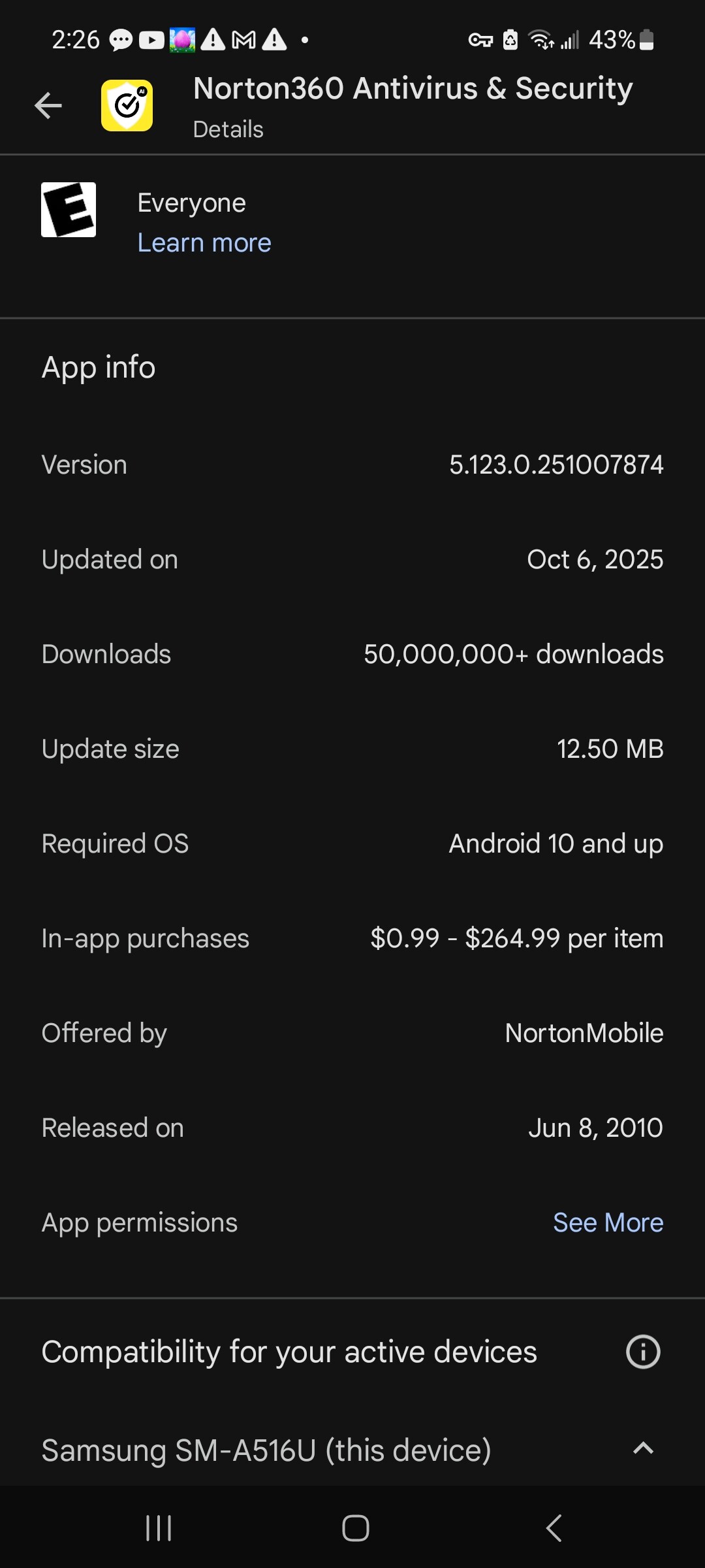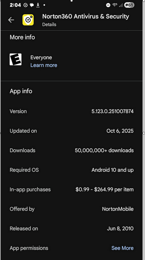 Hi. What’s the latest norton app cause I keep seeing