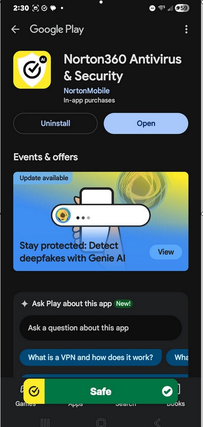 My playstore safe security app isn’t working. How is yours working.