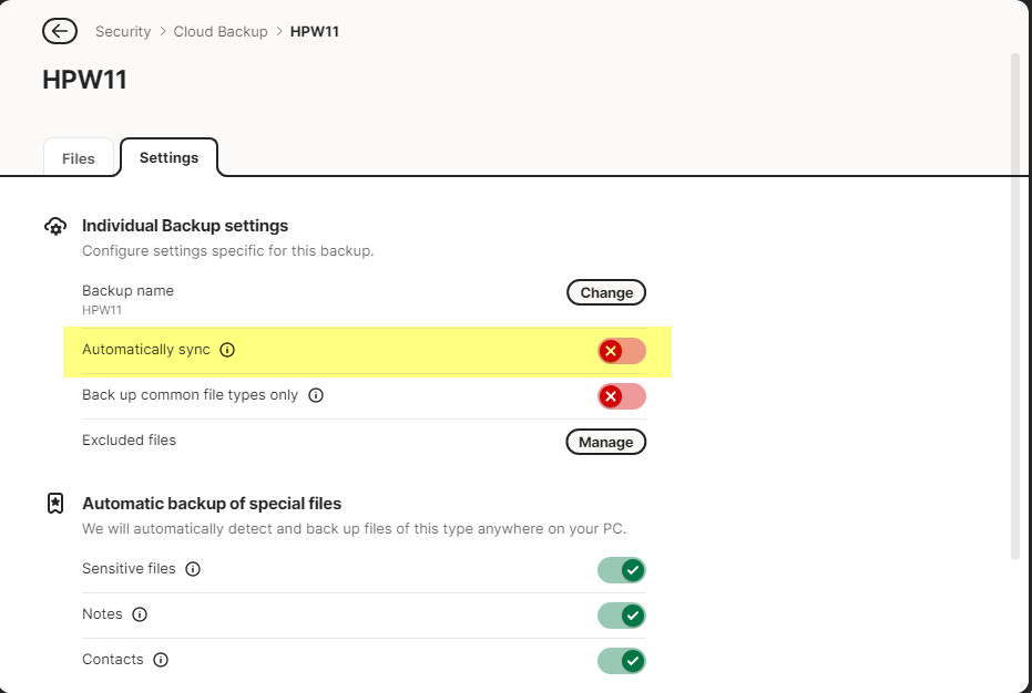 Note: Troubleshooting → Reset to Default → resets Cloud Backup