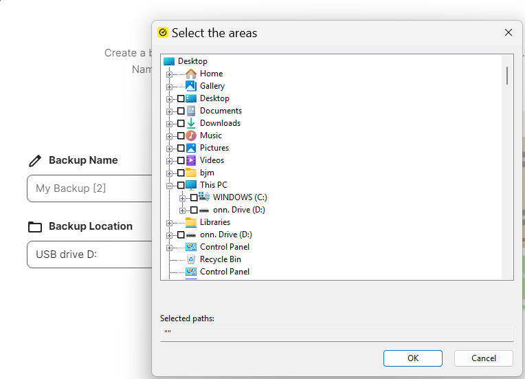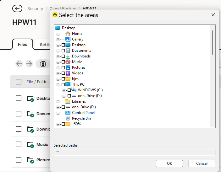 Detailed description: When I go to manage my backup from the app, instead of going to C: and allowing me to navigate downwards, it goes to a lower level folder and cannot be changed