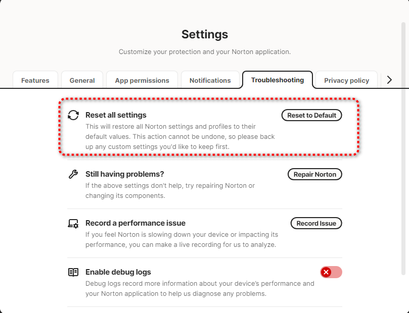 If your Norton is not working as expected and you’ve tried Troubleshooting → Reset to Default &or Repair Norton & clean re-install Norton 360…then…reach out to Norton support.