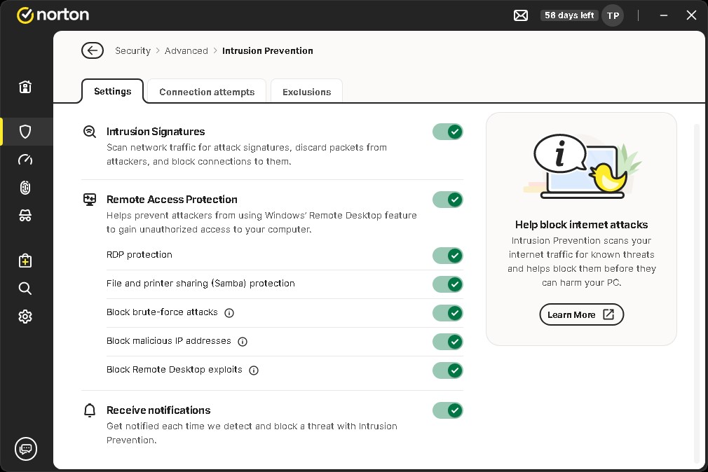 I don’t think its specifically an RDP issue, when I get certain notifications and try doing a screen capture the notification always gets hidden until I close my capture app. Then it reappears. The settings shown below are the only areas where I can see that may be of help. These new version releases are not user configurable in the ways Norton was before them.