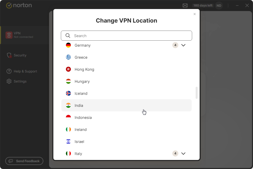 Norton Secure VPN is not available for use within India due to governmental regulations.