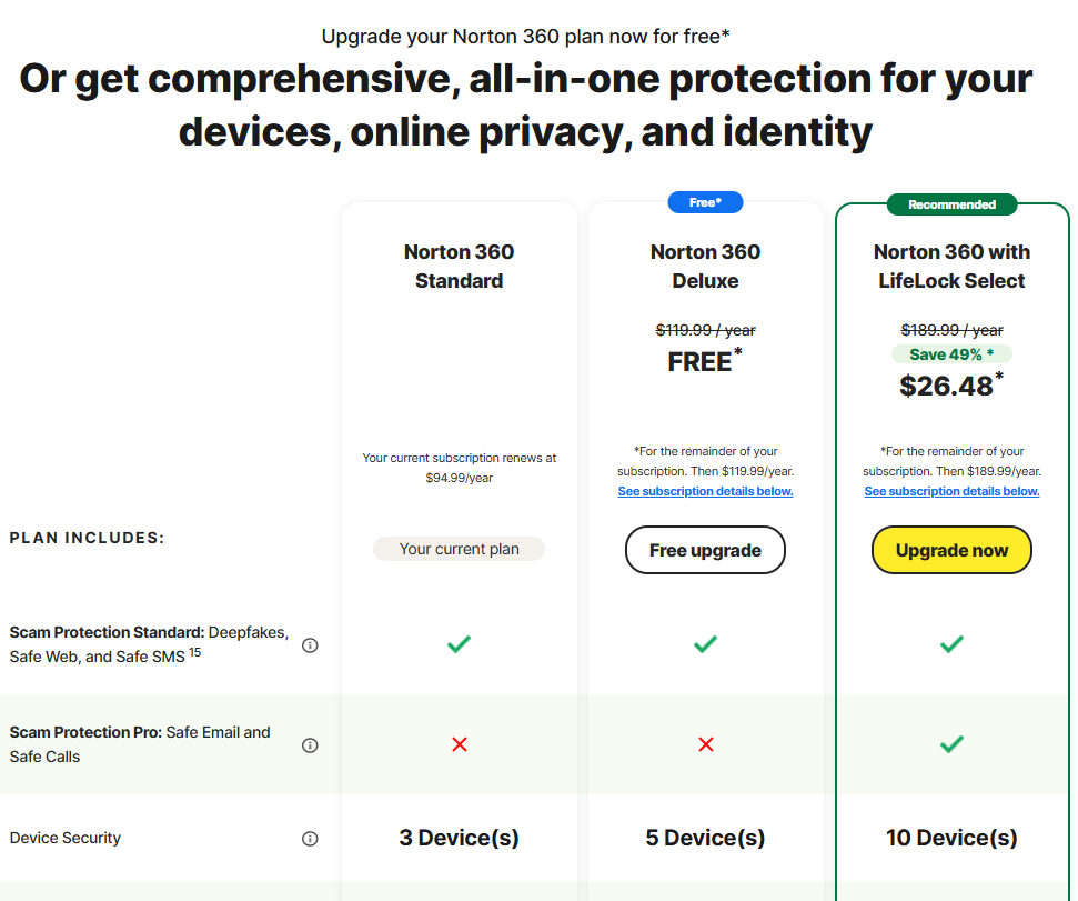 Just after cancelling the ‘auto-renew’ feature, I get pop up messages about FREE trials over and over. This is a JOKE. Quick, Full, Smart, Scan after scan reveals everything is just fine, but when you try to uninstall and cancel or close the window all of these messages appear, ‘WAIT’ before you go. etc. I’m sick of not getting my money’s worth. I tried Software Updater, Utilities Ultimate, Desktop Support, with 360, all amounted to well over $100.00 plus. The only thing it does is scan my laptop; that’s it. My browser stops ad tracking and disables pop-ups Norton wants to charge you for that !!! Absurd. Free Upgrade?? let me translate that: We proposition you to purchase a higher tier price point for something you don’t need and make it seem like you’re getting a deal. I can’t be the only person going through this utter NONSENSE with Norton. Microsoft Defender, password manager tool, and system updates are FREE but Norton want to charge you for functions your electronic device does with the push of a button. This is ridiculous.