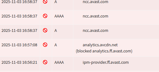@smokin365 I have tested a little as well - starting/logging into Windows once with our pi-hole inactive (temporarily not blocking anything, so sort of the opposite of your blocking the avast analytics/telemetry stuff) might have helped a bit? At least after rebooting and switching off and on the computer, Norton didn’t immediately start grabbing focus, even when working online for a couple of minutes. There are quite a lot of calls to avast/avcdn being logged/blocked, so this could definitely be related to the issue.