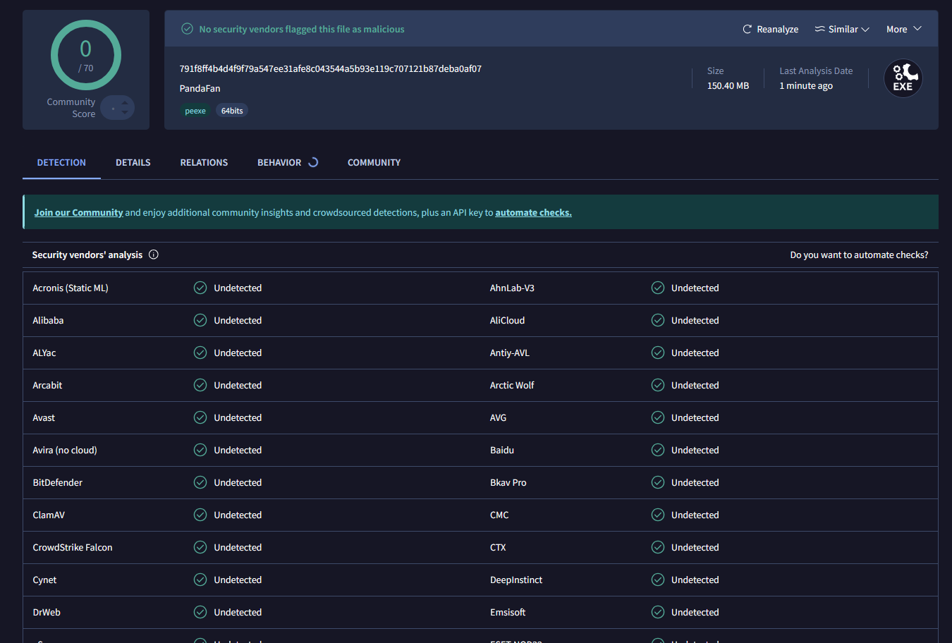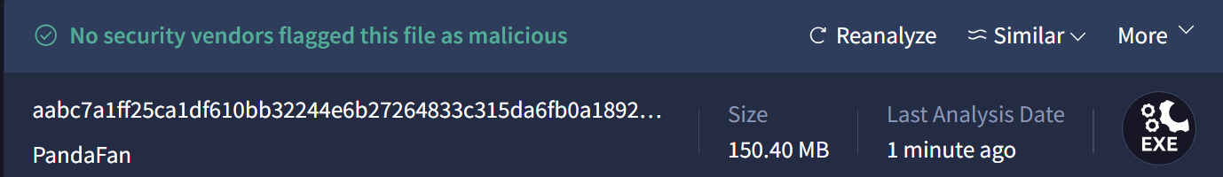 fwiw ~ my Norton and Malwarebytes do not detect PandaFan-win32-2.1.2.exe installer.