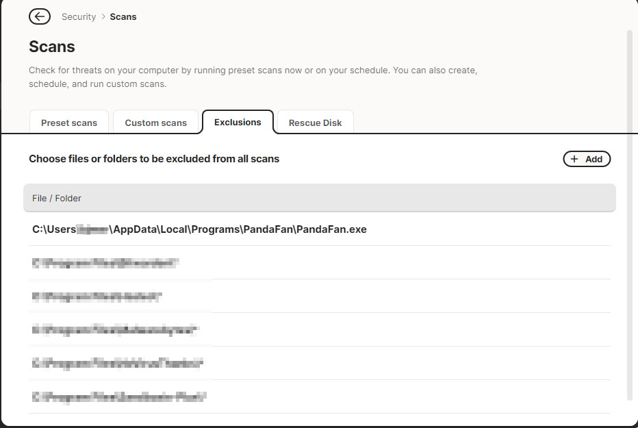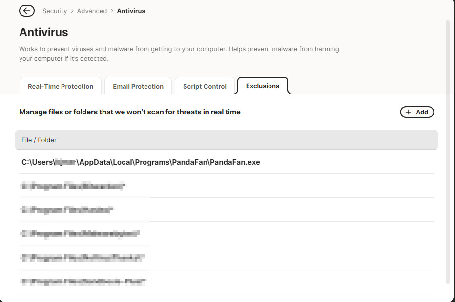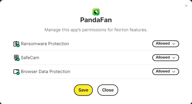 To allow Pandafan to run without disabling Norton’s protections, you can add an exception for the application in your Norton settings.