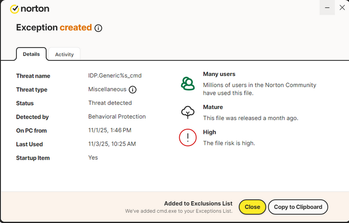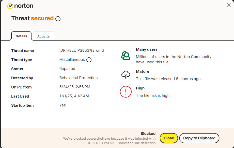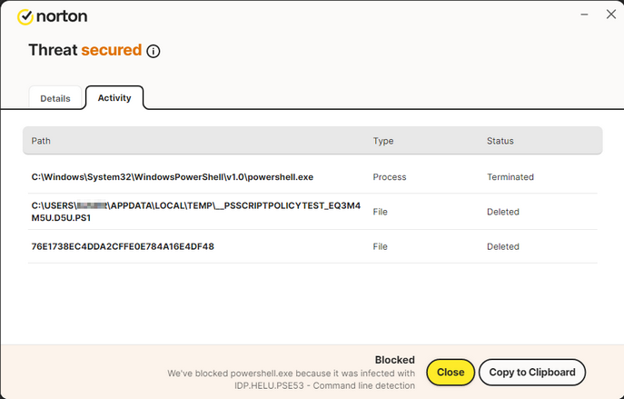 Behavioral detection: The IDP (Identity Protection) component in Norton is designed to look for suspicious behavior. Since malicious software can use PowerShell for its own purposes, Norton may flag legitimate scripts or processes if their behavior appears to resemble malware.
