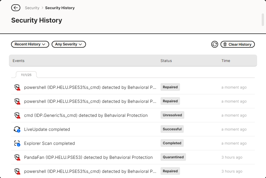 Check the Norton History for Details: Look in Norton’s security history for details about the alert, including the full command line and the “Actor” or “Parent Process” that started PowerShell. This context is crucial.