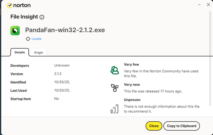 Lack of Reputation: Norton’s security is partly based on the reputation of files and applications. If the updated Pandafan.exe is new and has not yet been “whitelisted” by Norton, it may be blocked until it is verified.