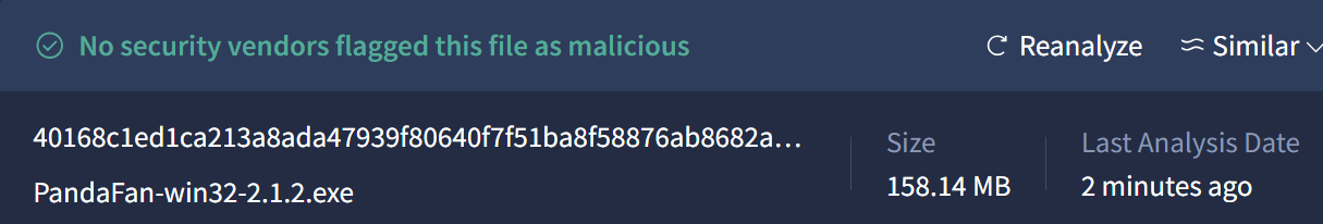 Note: PandaFan-win32-2.1.2.exe installer is not signed.