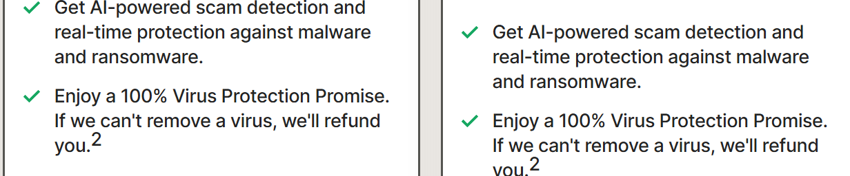 I should have taken a screenshot yesterday. I could swear that it noted malware protection for all subscription levels. The current page shows “Get AI-powered scam detection and real-time protection against malware and ransomware.” for the Plus and Ultimate versions.