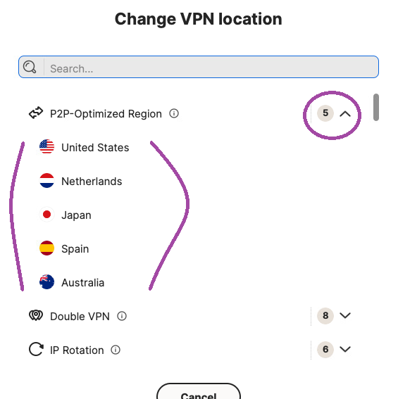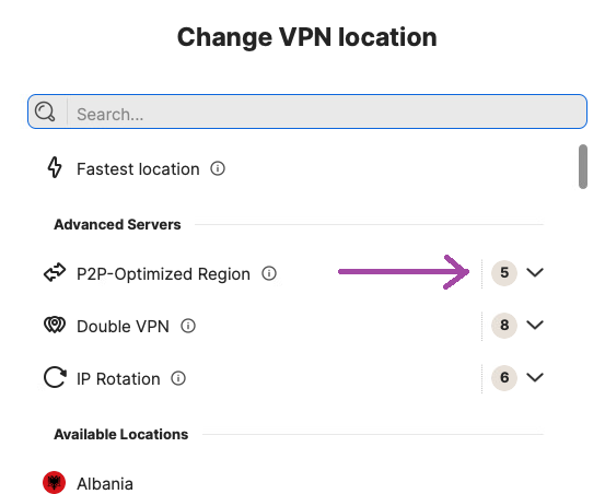 - More countries for P2P-Optimized Region: We have added a few individual locations under the “P2P-Optimized Region”.