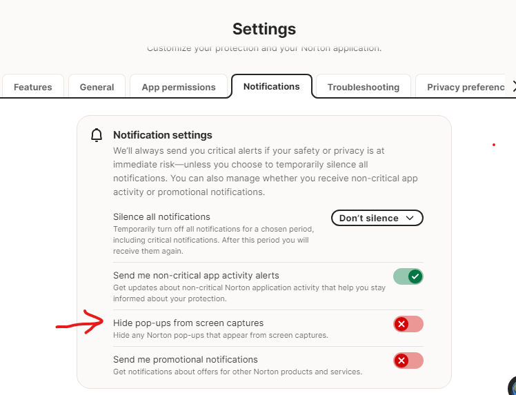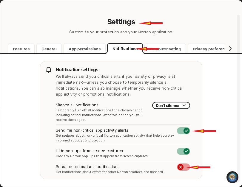 Even with promotional notifications “disabled,” Norton: