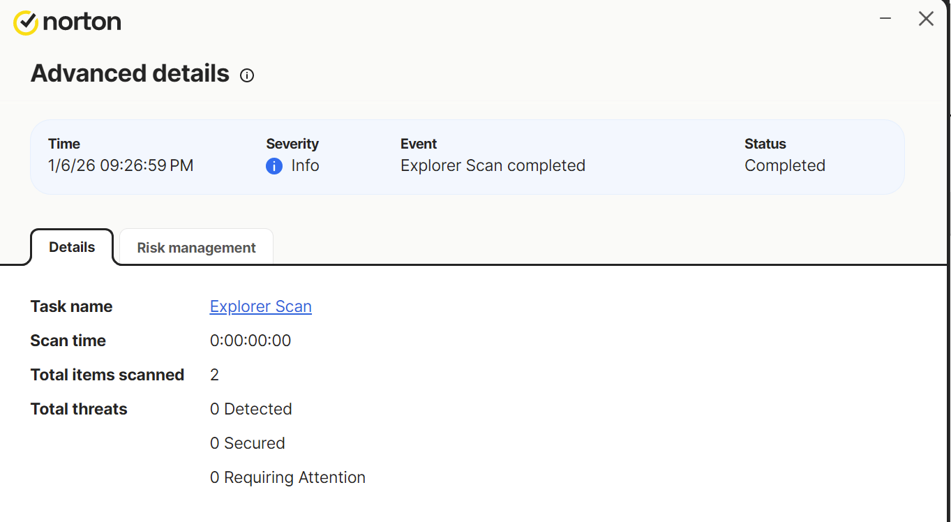 Detailed description: After scanning a single downloaded PDF document through File Explorer, the scan history states that two documents were scanned. Yet Norton considers the two-item document to be safe. This was tested more than once.