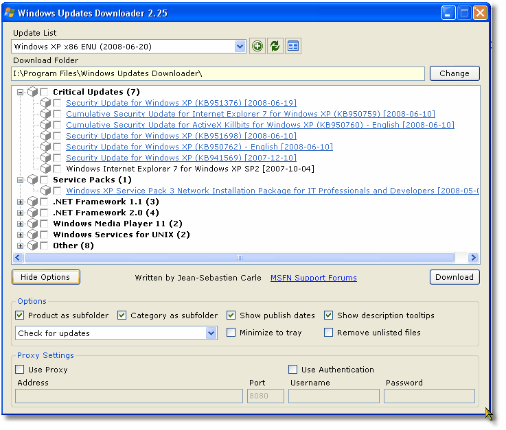 In case you were unaware, you can create your own customised XP install DVD / CD's with whatever updates you like. I have not tried it with a HP system but can't see why it wouldn't work so long as you can locate the necessary drivers to slipstream onto your custom CD. Go to Windows Updates Downloader (WUD) and download the main file and the update lists. The latest one looks like this: