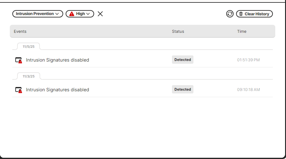 There is currently a contradiction in Norton. In the settings, the attack signatures + protection against remote access (see screenshot 1) are shown as enabled, but at the same time, under the Security History menu item, these two settings are shown as disabled (screenshot 2). At first, I thought it was related to the Windows 11 update, but it also shows up on the MAC, even though the license on the MAC is different and was installed later.