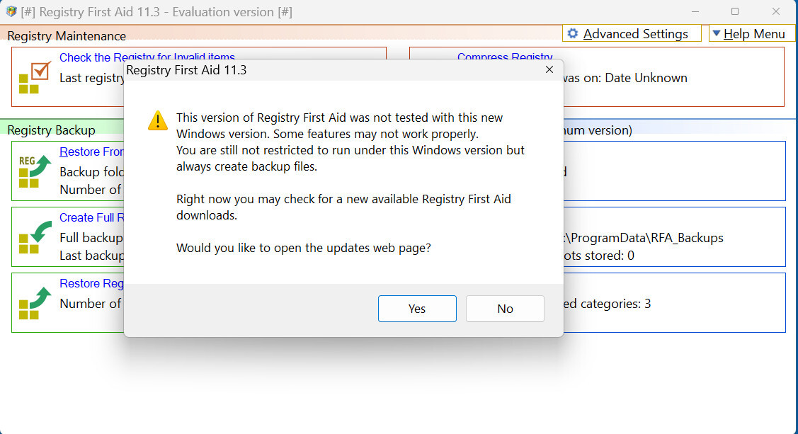 Registry First Aid v11.3 Evaluation version here appears to be from 2022 and appears to not support W11 24H2