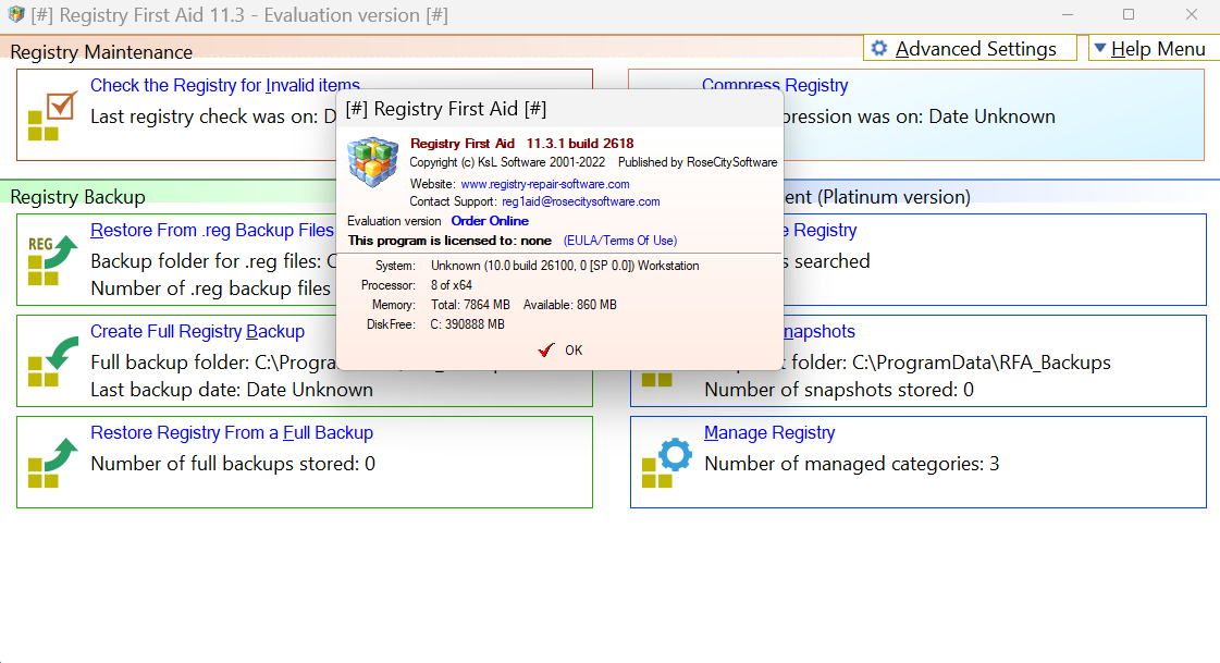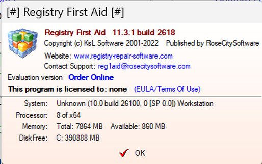 my fwiw as test: was Registry First Aid 11.3 Evaluation version