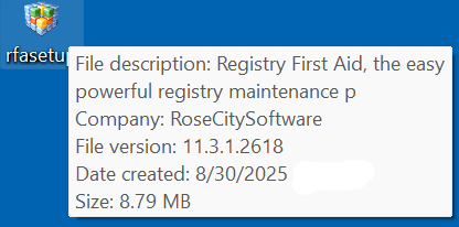 Rose City Software wrote: “Please note: Registry First Aid v 11.3.1 has not yet been updated for use with Windows 11 24H2”