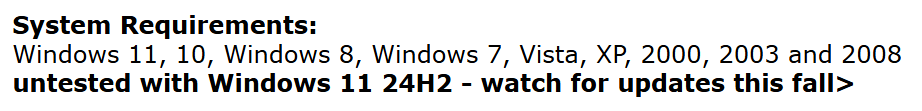 ”Our developers are studying this latest version of Windows to see if Registry First Aid can be updated to to work effectively and safely. But there are serious issues for now RFA has not been updated for compatibility with Windows 24H2. A notice will be sent out to RFA users if and when it has been successfully updated.