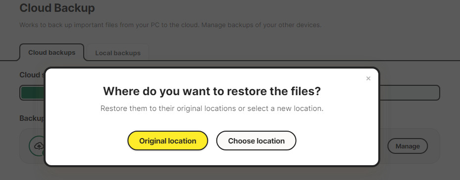 This was my first question with picture I posted. Norton doesn’t show any backup in “Cloud backups“ section. Please see my posted picture above. I can’t restore. So I’m asking for help.