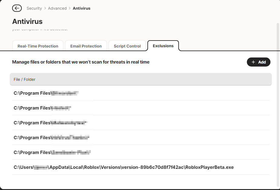 Some antivirus programs offer an “Exclusions” or “Trusted Programs” list where you can explicitly add Roblox to prevent it from being blocked, according to Roblox Help.