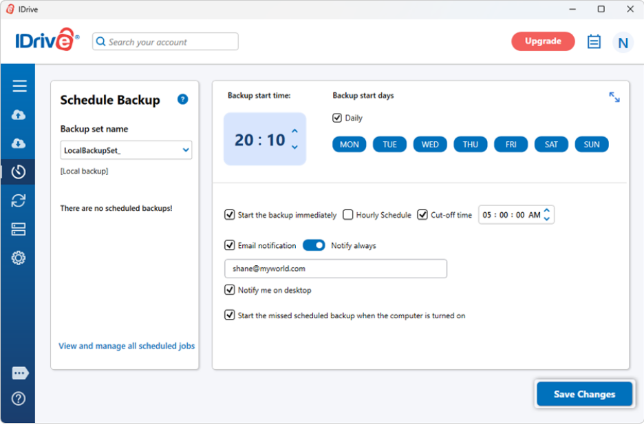 Flexible Scheduling: You can set backups to run daily, on specific days of the week, or at a particular start time.